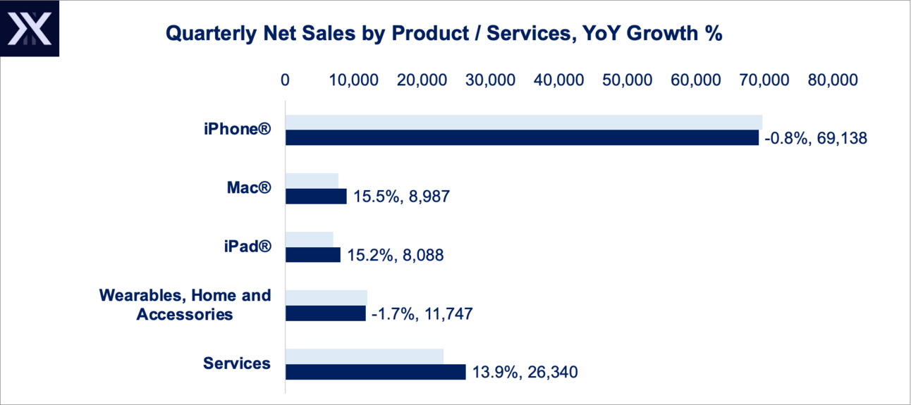 Overall, Apple’s Mac, iPad, and Services enjoyed a great quarter. But the overall result was let down by iPhone and Wearables.