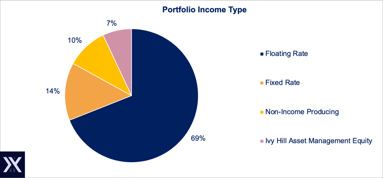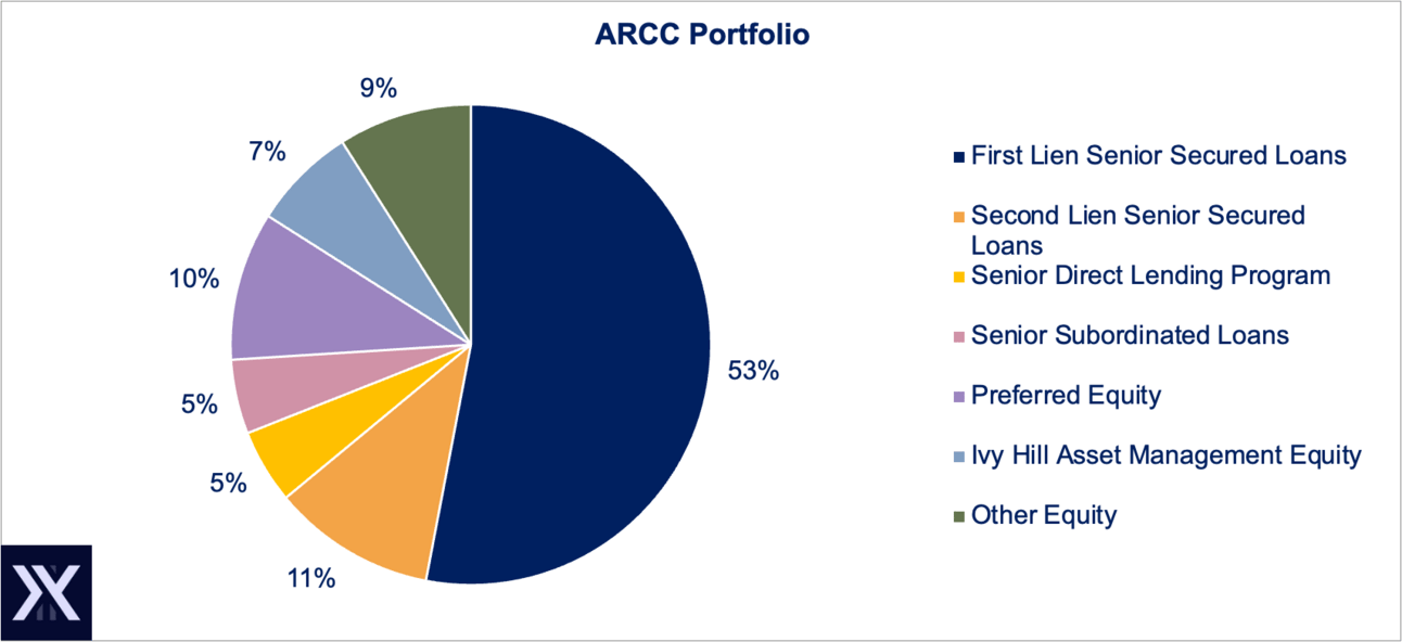 The majority of ARCC’s portfolio is in First Lien Senior Secured. Just under a quarter falls under Second Lien or Senior loans. The final quarter is split between Preferred Equity, Ivy Hill, and Other Equity. Ivy Hill is a Hedge Fund focused on complex private credit deals.