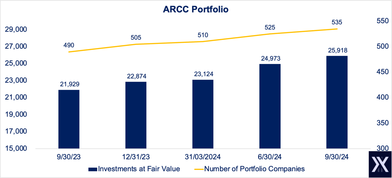In Q3, ARCC’s portfolio expanded by 10 companies to 535 names in its portfolio, the largest by far among Business Development Companies.
