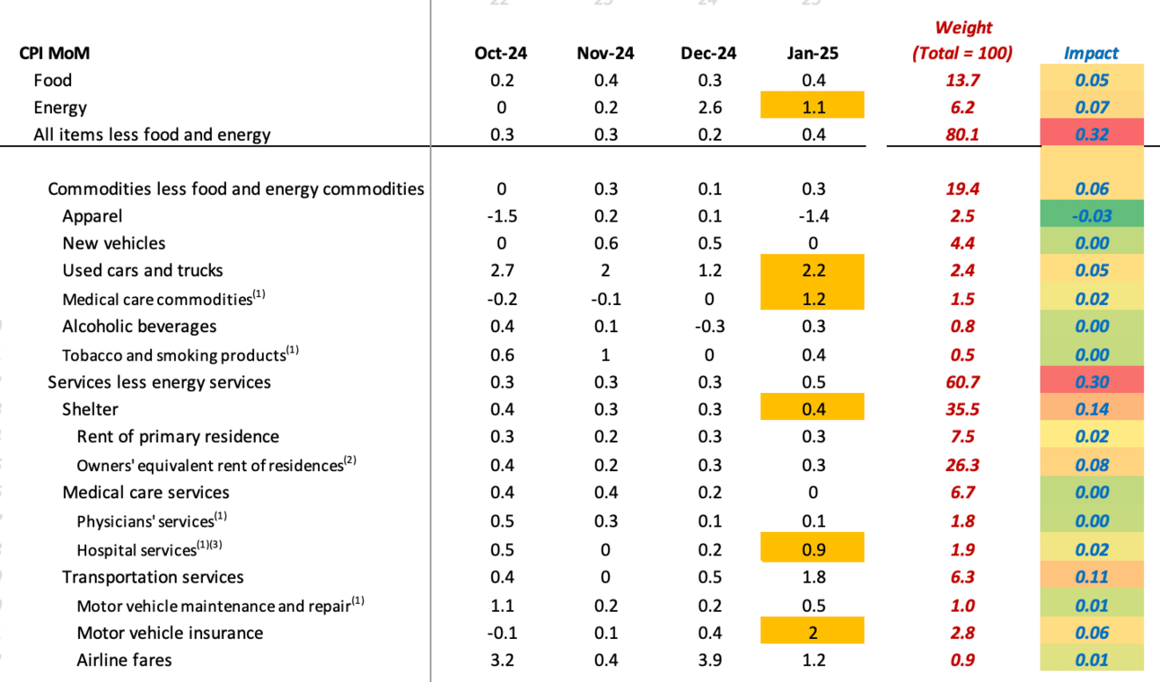 Our full breakdown of the CPI items shows that in fact, the hot readings were broad-based. It spans across Energy, Used cars, Medical care commodities, Shelter (the most important one due to its high weighting), Hospital services, and Motor vehicle insurance.