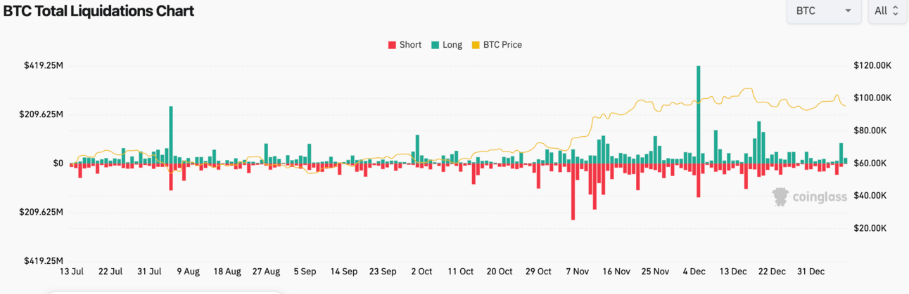 Bitcoin’s liquidation levels were heightened yesterday, but nowhere close to the levels seen in December.