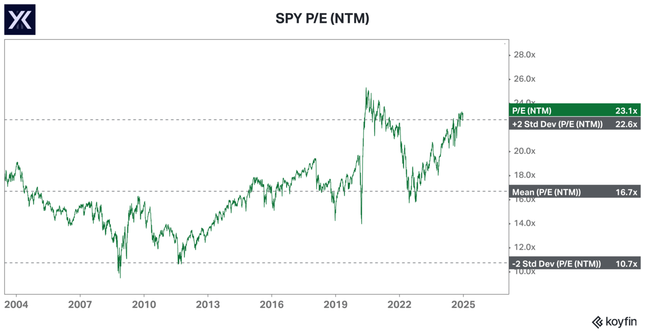 P/E (NTM) ratio is approaching the historical high of July 2020, over 2 standard deviations from the mean.