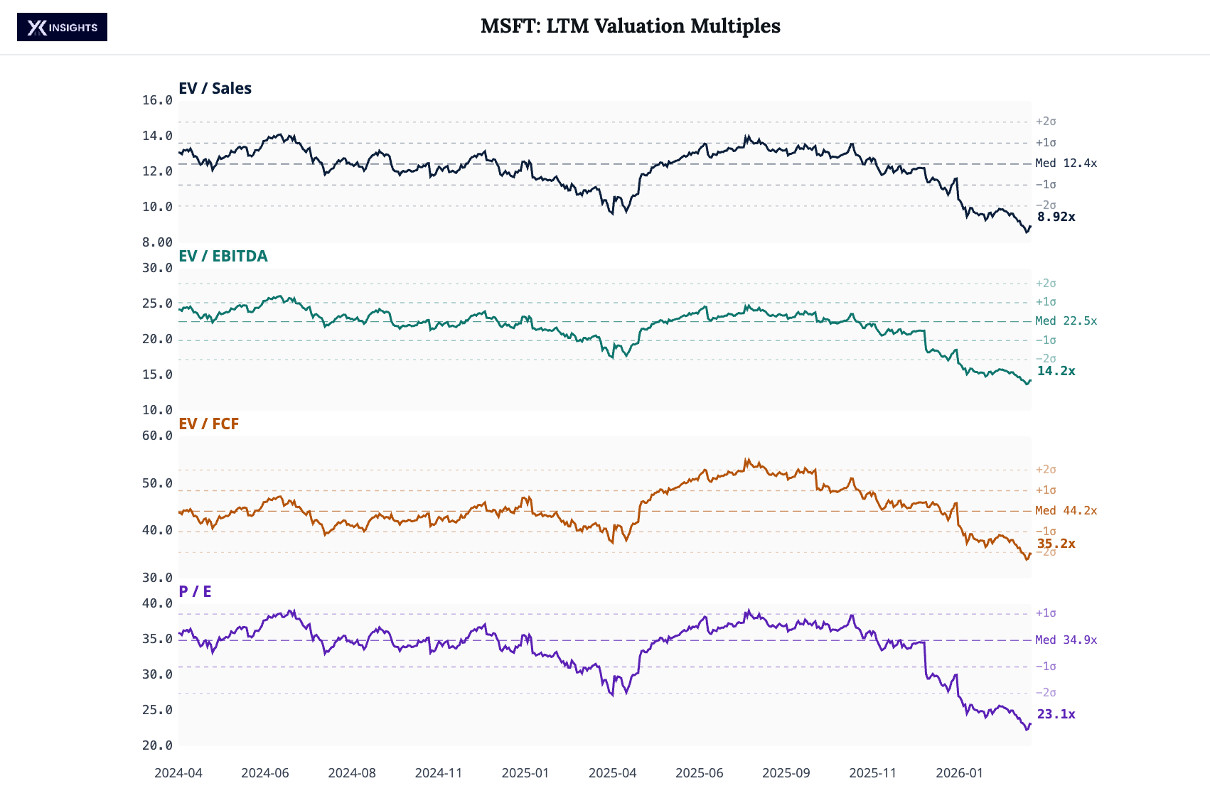 ARM’s valuation is now near the median of its 2-year history, having rallied off the lows.