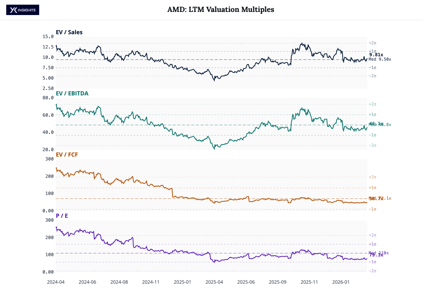 AMD’s valuation is near its 2-year median.