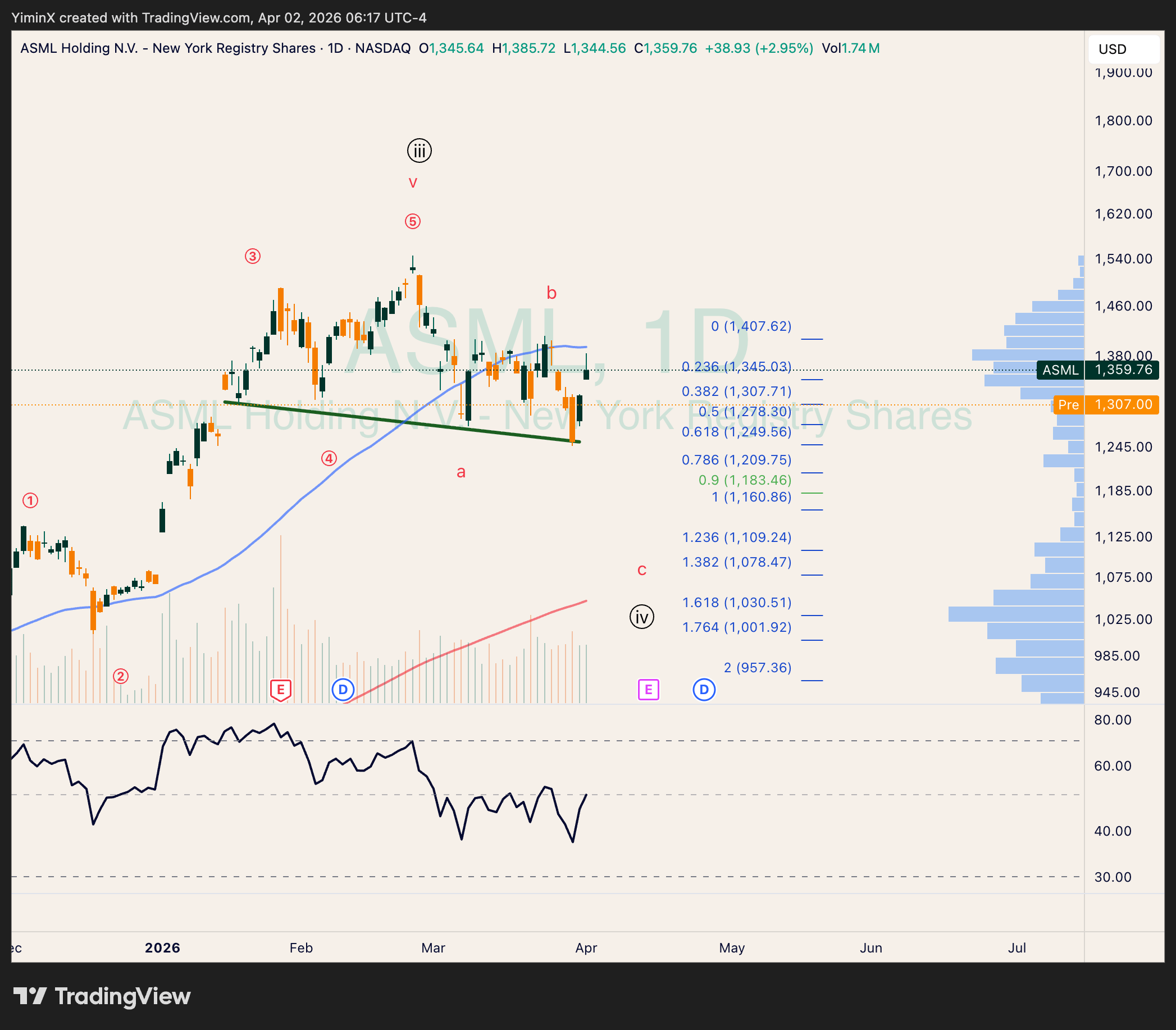 NVDA’s drop last Friday - this Monday breached the prior support zone. We are likely confirming the 5-wave down expectation for (c) today.