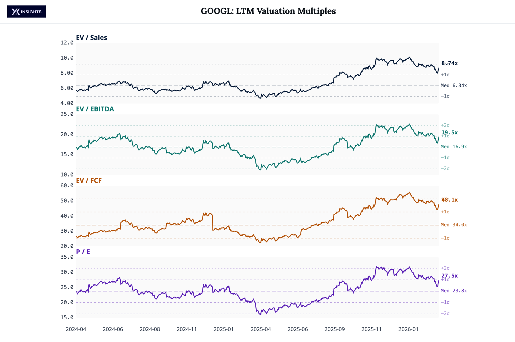 GOOGL’s valuation is still elevated vs its history.