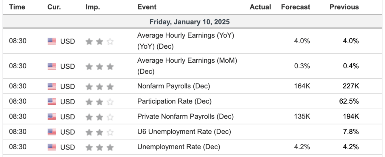 Nonfarm Payrolls are out at 8:30am ET. The consensus is a sizeable 164k net new jobs added, and a 4.2% (flat MoM) Unemployment Rate.