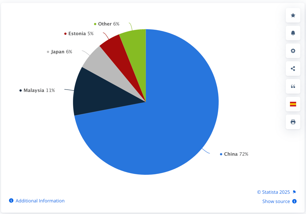 Statistica: Distribution of rare earth imports to the United States between 2019 and 2022, by country of origin