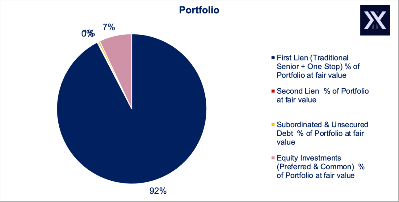 92% of GBDC’s portfolio is in First Lien loans (traditional senior loans plus one stop loans), with just 1% in Junior Debt, and 7% in Equity.