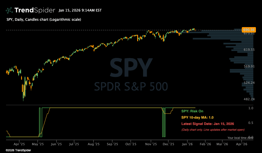 SPY has enjoyed an unusually low-volatility ride from the April 2025 bottom to this week’s new high.