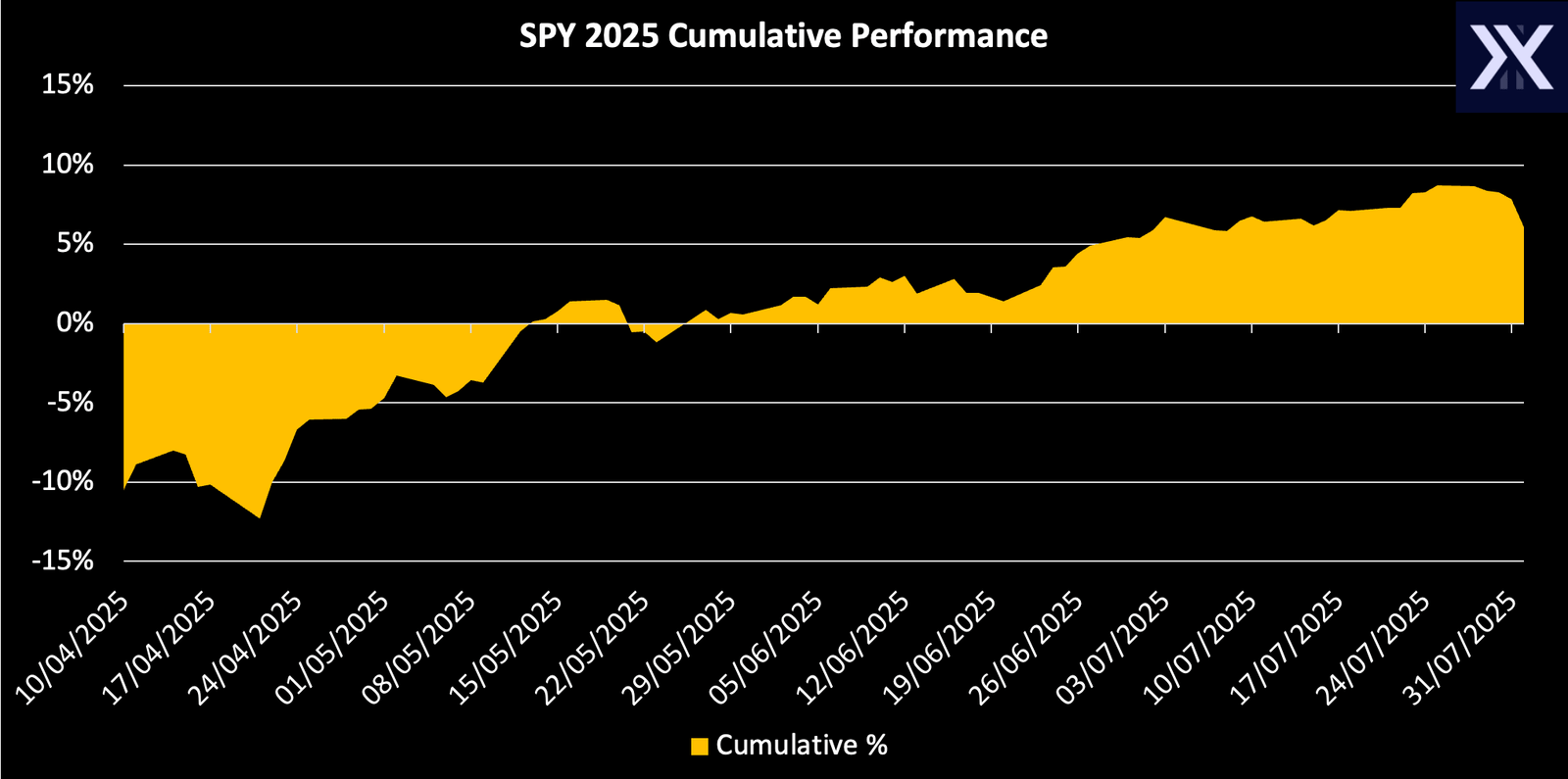 However, SPY still enjoys a positive YTD return due to a very strong run in May (+6.3%), June (+4.8%), and July (+2.3%).
