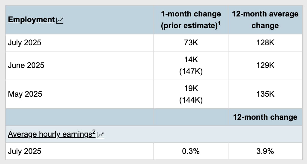 On Friday, the previously reported 147k and 144k net new jobs added in June and May respectively were revised down to just 14k and 19k.