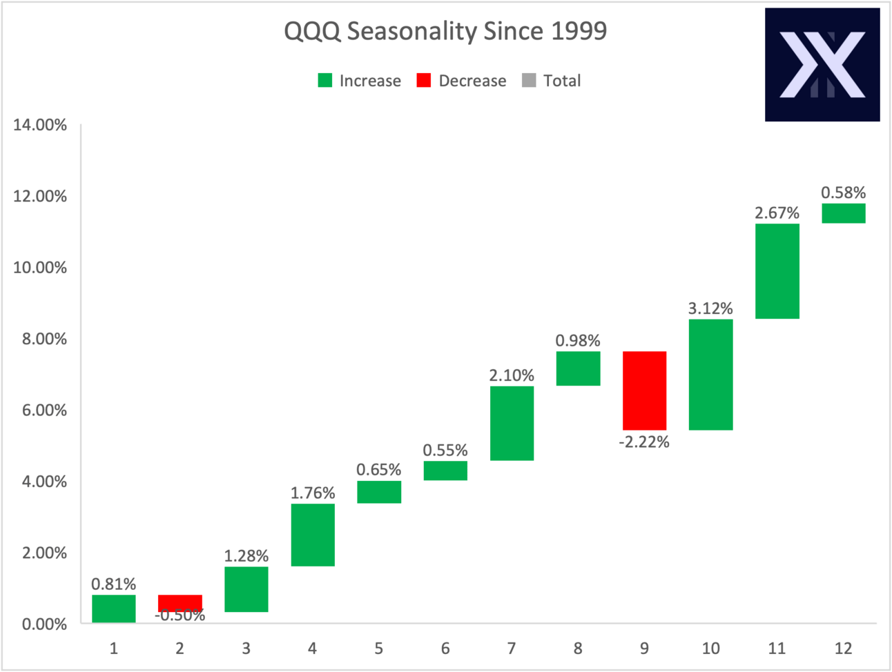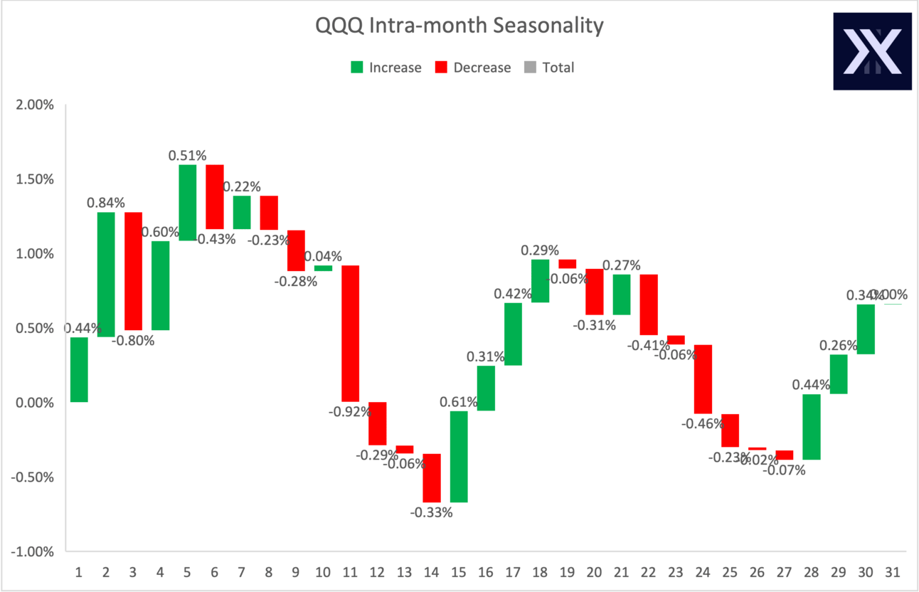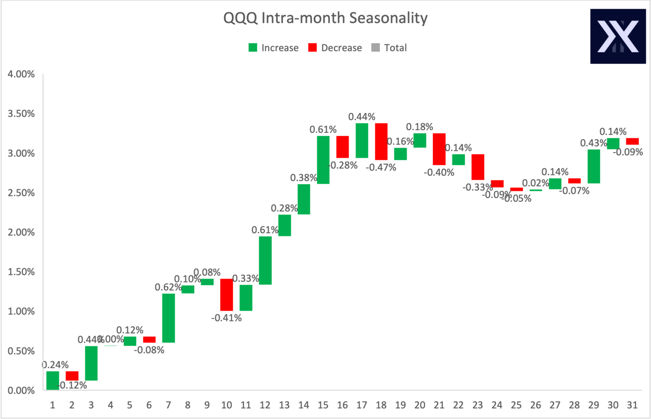 QQQ normally faces a small headwind until the final 4 days of the month.