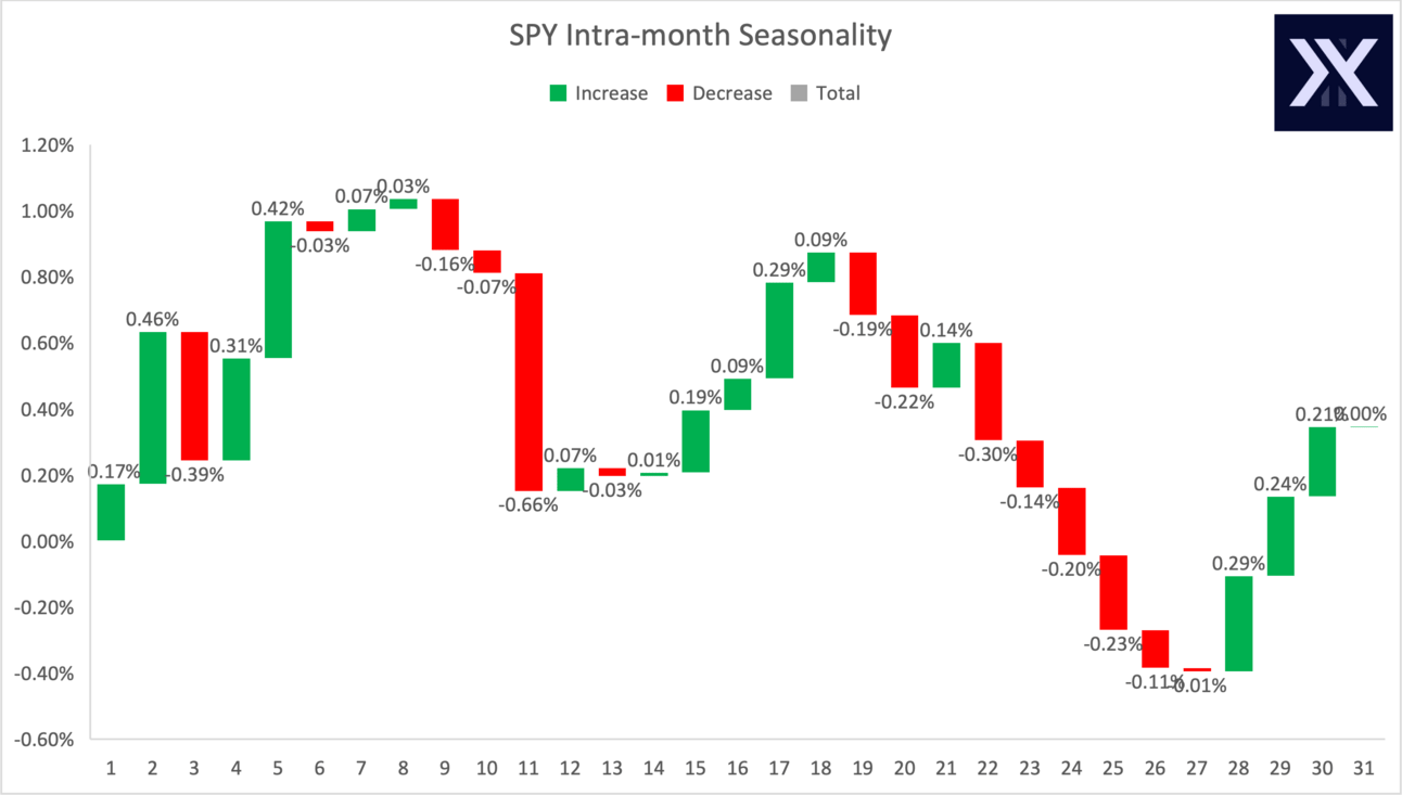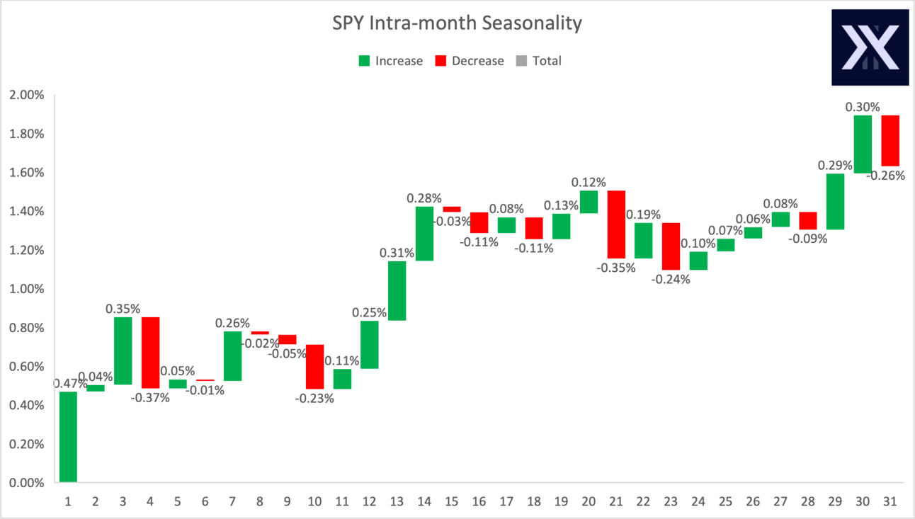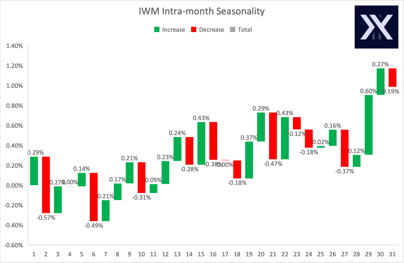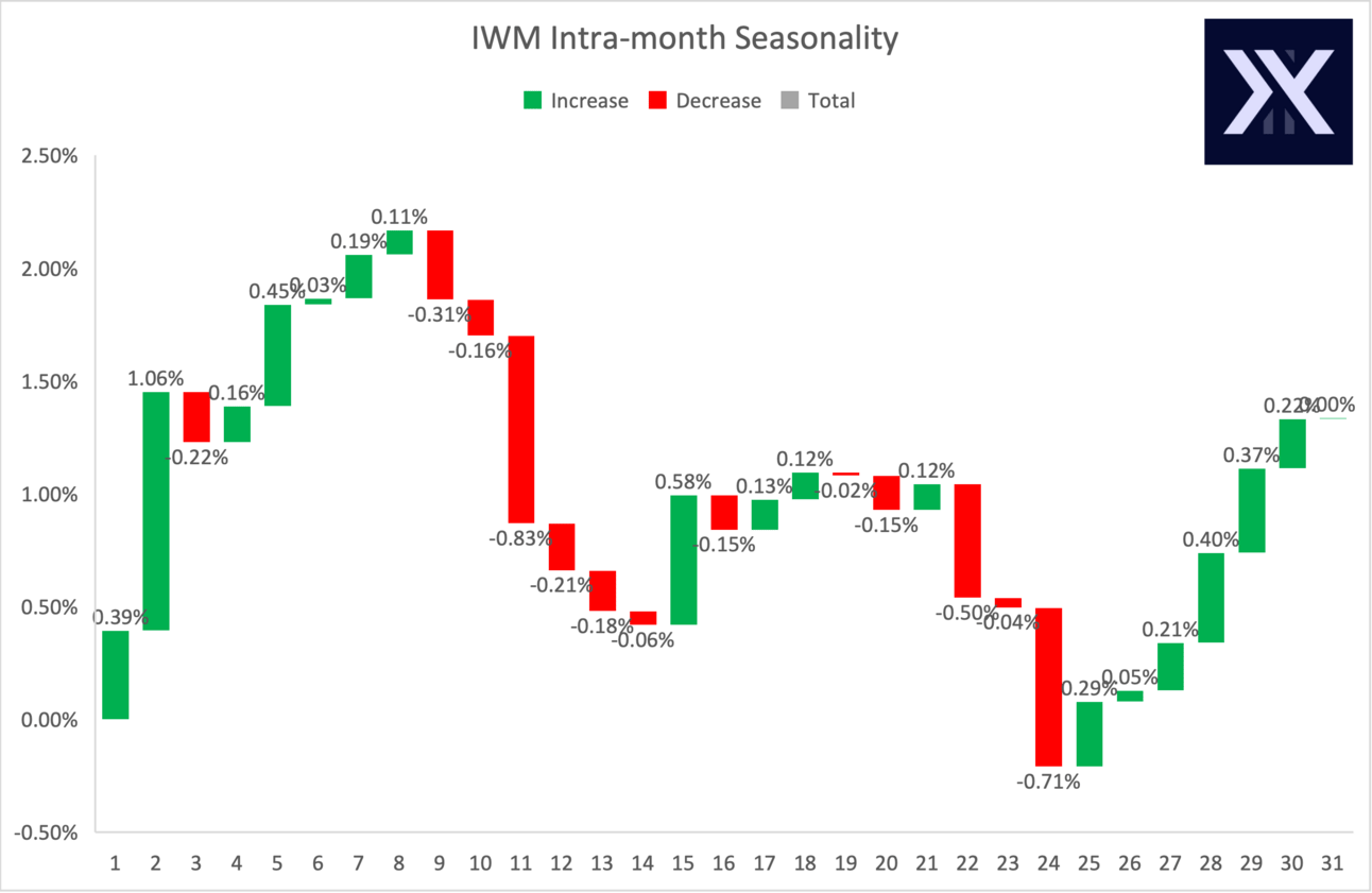 QQQ normally faces a small headwind until the final 4 days of the month.