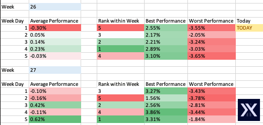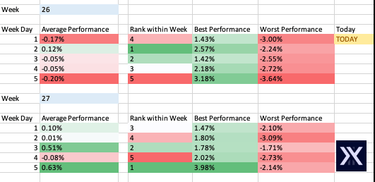 QQQ weekly patterns: Weeks 26 & 27 of the year