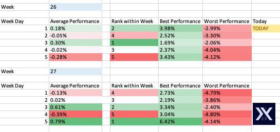 SPY weekly patterns: Weeks 26 & 27 of the year