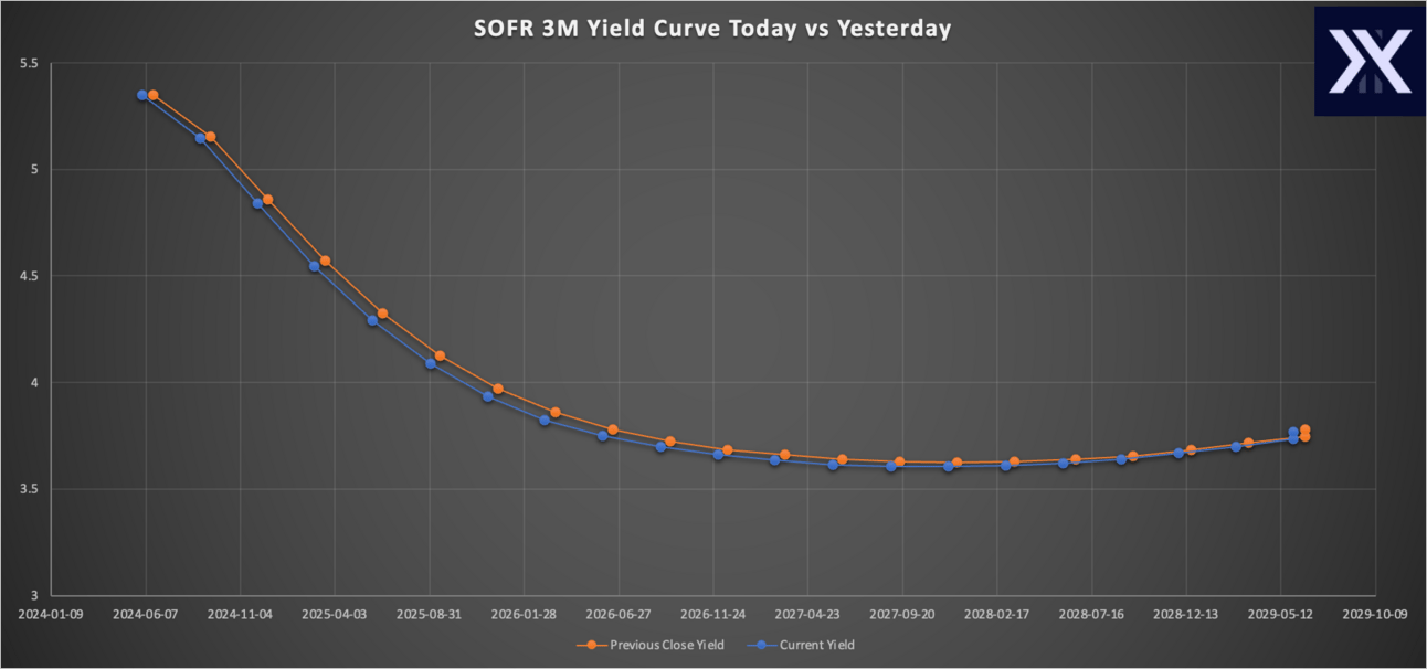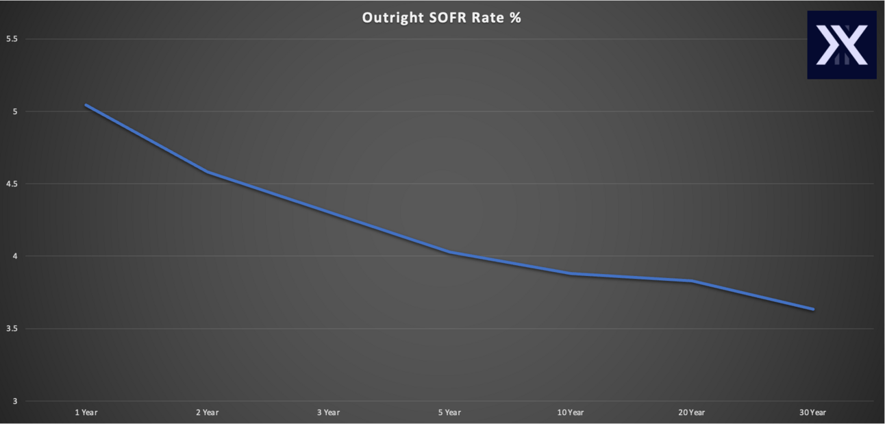 Further out the curve, we are still stuck above 3.5% in SOFR rates. Note that SOFR yields are lower than bond yields.