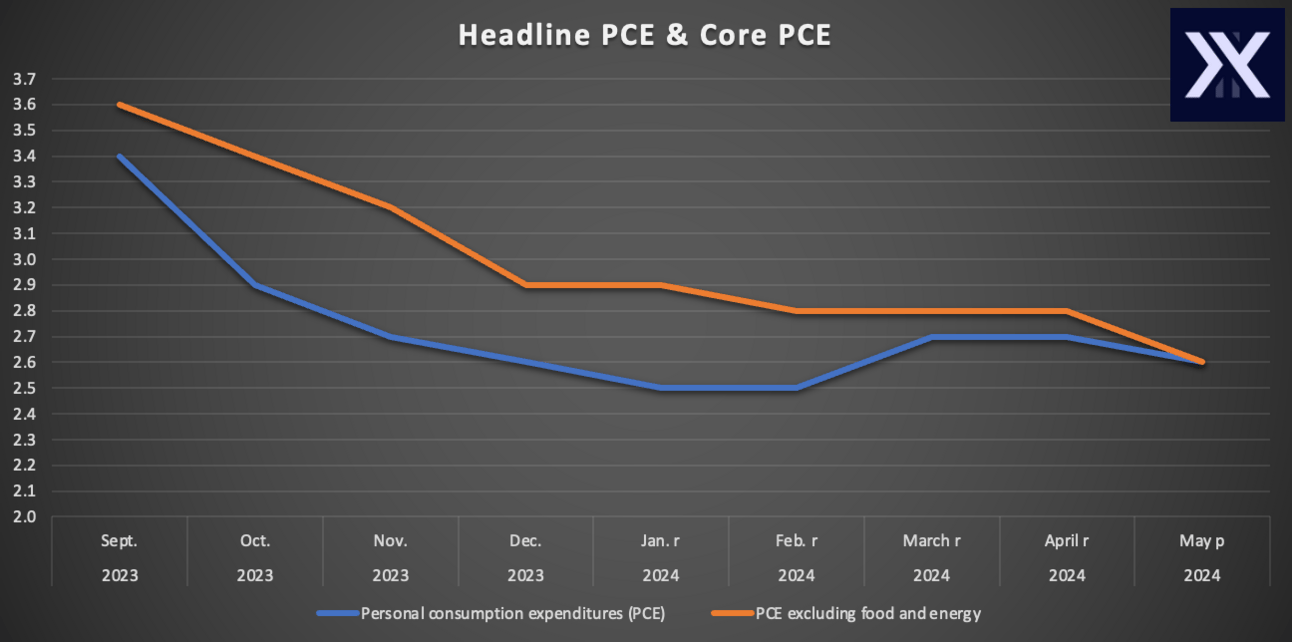 Today’s May PCE data came in line with consensus. The Headline PCE came in flat MoM, and the Core PCE grew by just 0.1% from April.