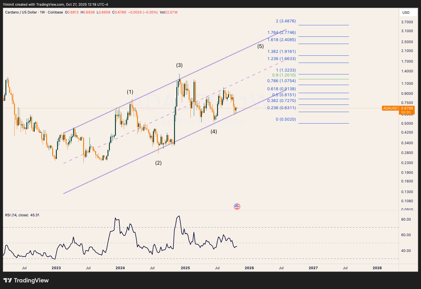 Wave (5) could reach $1.6+, as the 1.23 inverse extension of wave (4).
