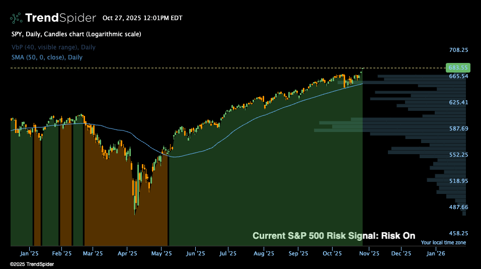 I run daily ML Model Signals for SPY to gauge its risk regime. Since early May, SPY has been Risk On (+ve) every day.