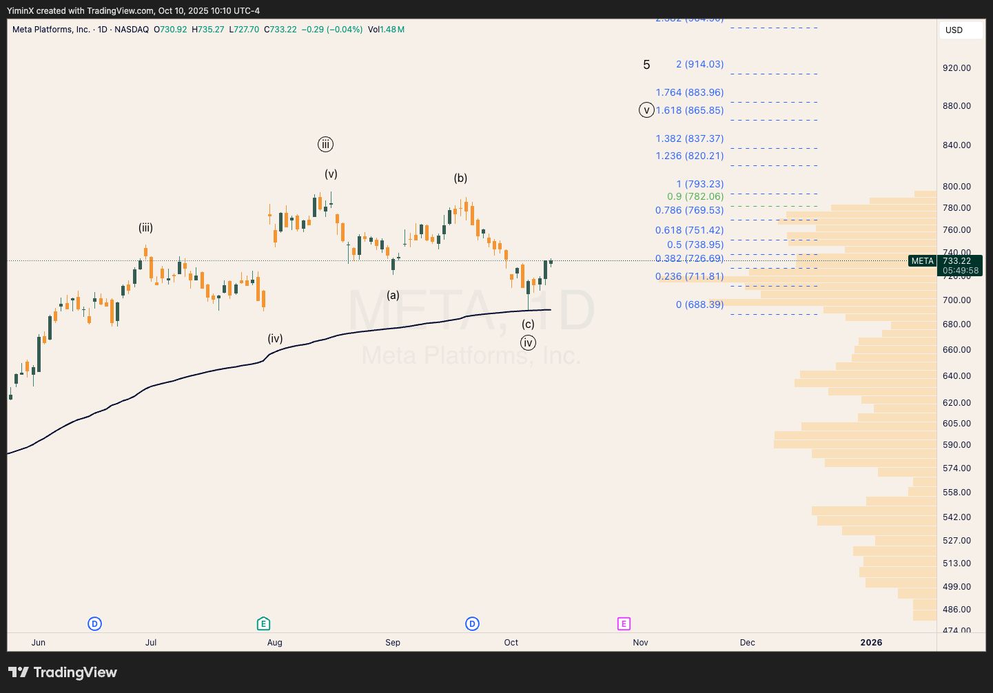 META has likely bottomed this week, with wave (c) filling out the 1.236 extension of wave (a). The incoming wave circle-v rally could target above $840.