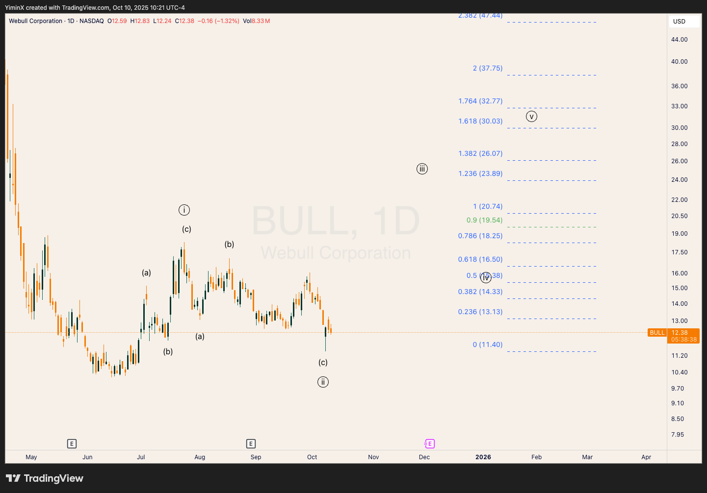 BULL appears to be forming a leading diagonal run to start its bullish cycle. This means the cycle could experience an a-b-c pattern in all of its 5 waves, with waves circle-i and circle-iv overlapping. Wave circle-iii can target around $24.