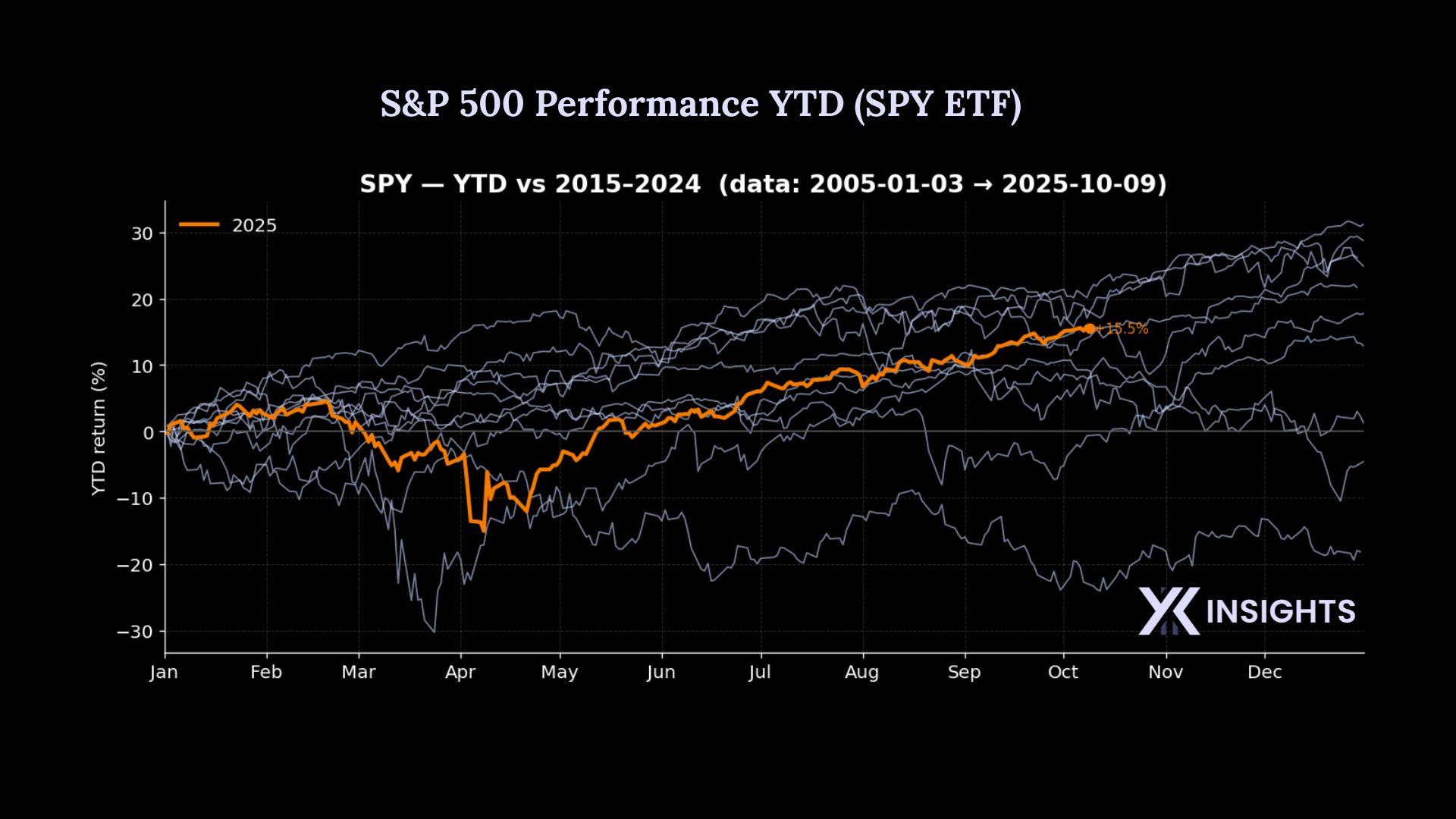 S&P 500 (SPY ETF) YTD is among the top 4 best years of the past decade. This is remarkable after the dramatic Q1 crash.