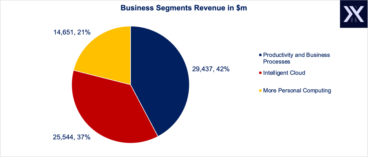 More Personal Computing’s revenue is the smallest at $14.7 billion. This segments includes Windows OEM & Devices, Xbox content & services, and Search & news advertising.