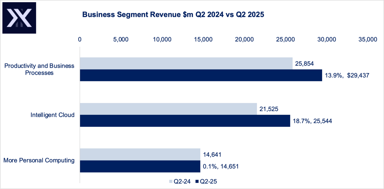 Intelligent Cloud grew the fastest in Q2, at 19%, thanks to Azure (31% YoY) and Server products (21% YoY).