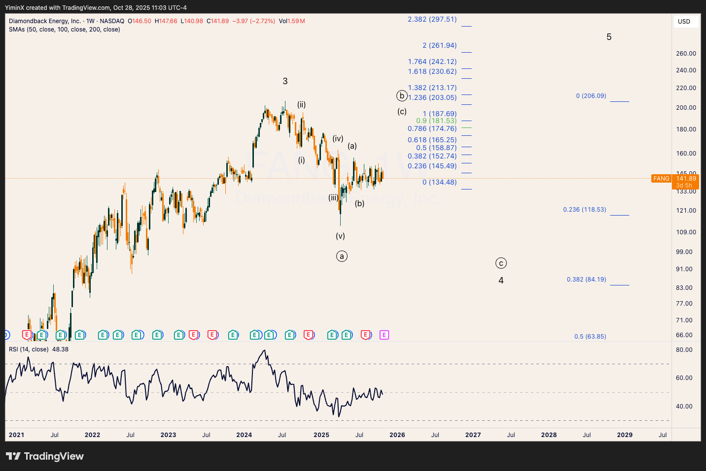 FANG saw a 5-wave decline in 2024, which could be wave circle-a of a larger-degree wave 4 correction.
