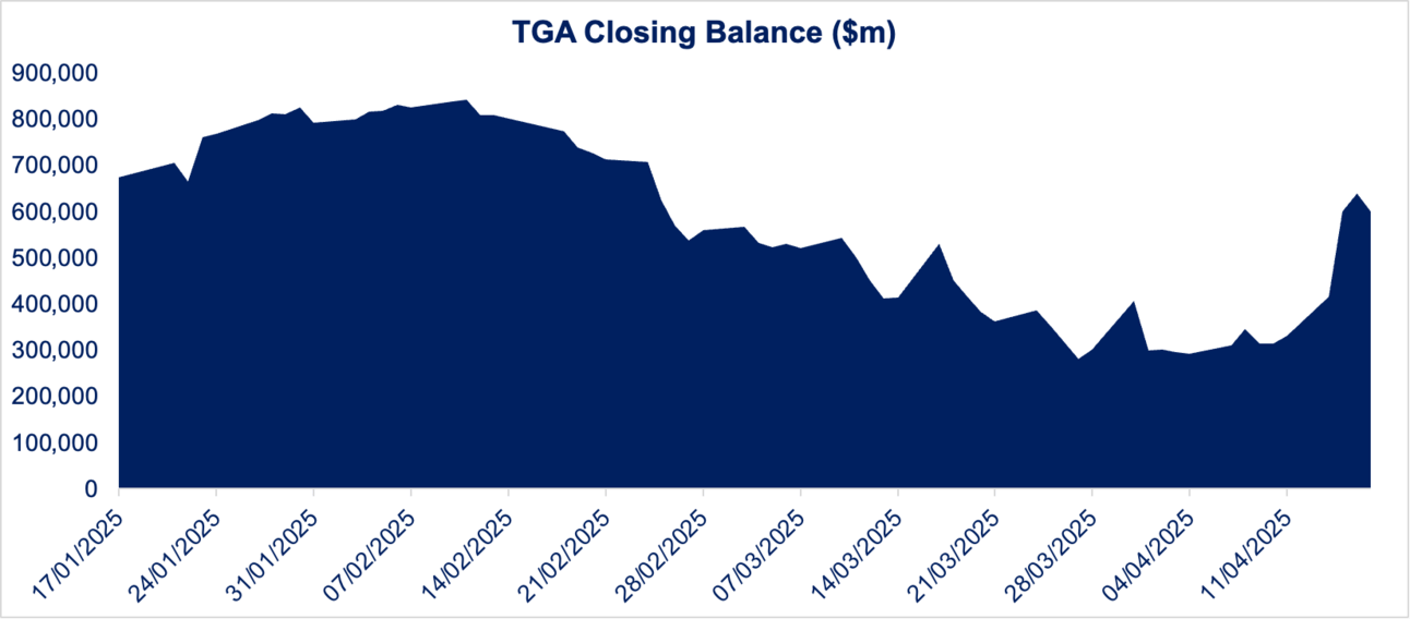 The market is pricing in 115bp of cuts in the next 12 months. This means 4 × 25 bp cuts being fully priced, starting in June, and there is a 60% chance of a 5th cut in March 2026.