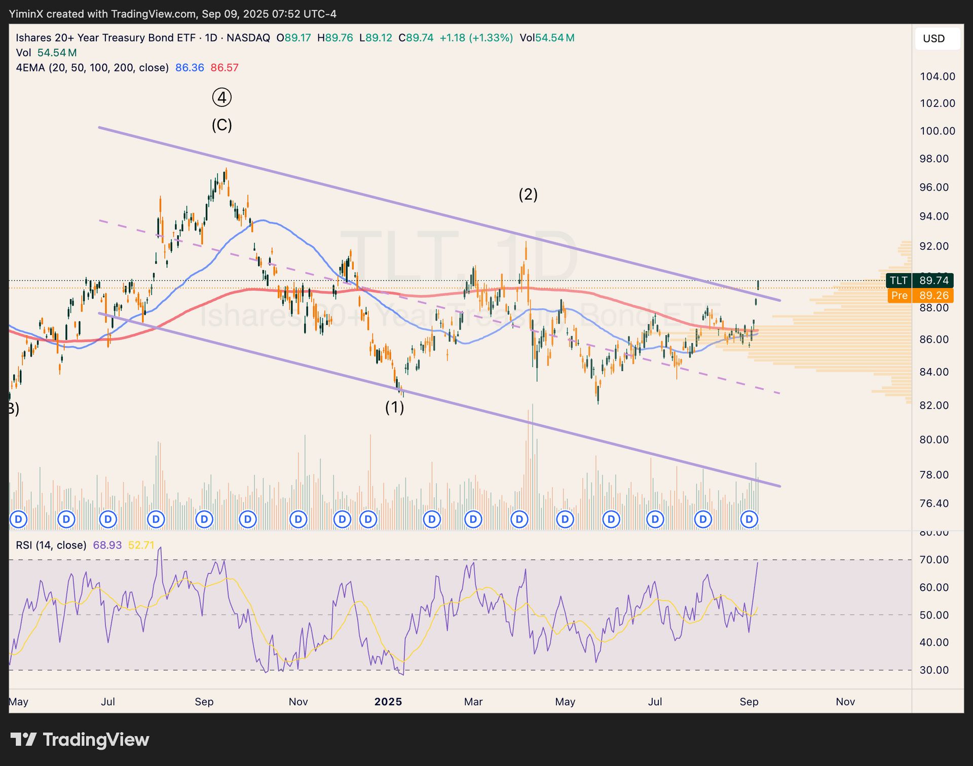 TLT broke above the top of the downward channel from the past year. This could signal a reversal of the trend from here.
