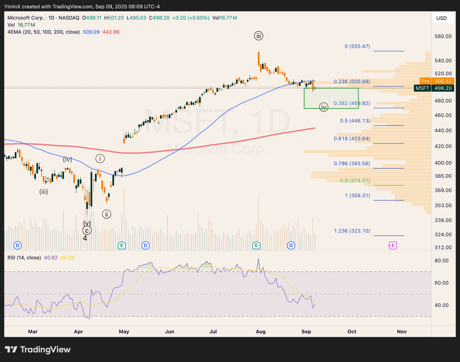 MSFT is in a bearish short-term trend. We could see a deeper retracement towards $470.