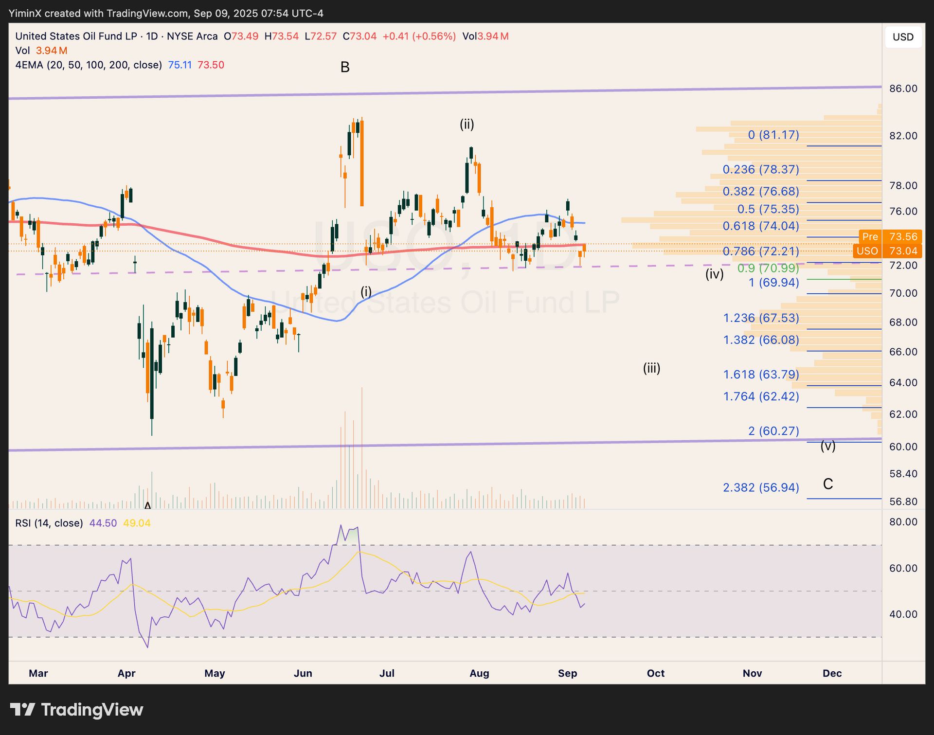 The 200-day MA is the magnet for USO currently. The overall structure appears bearish.
