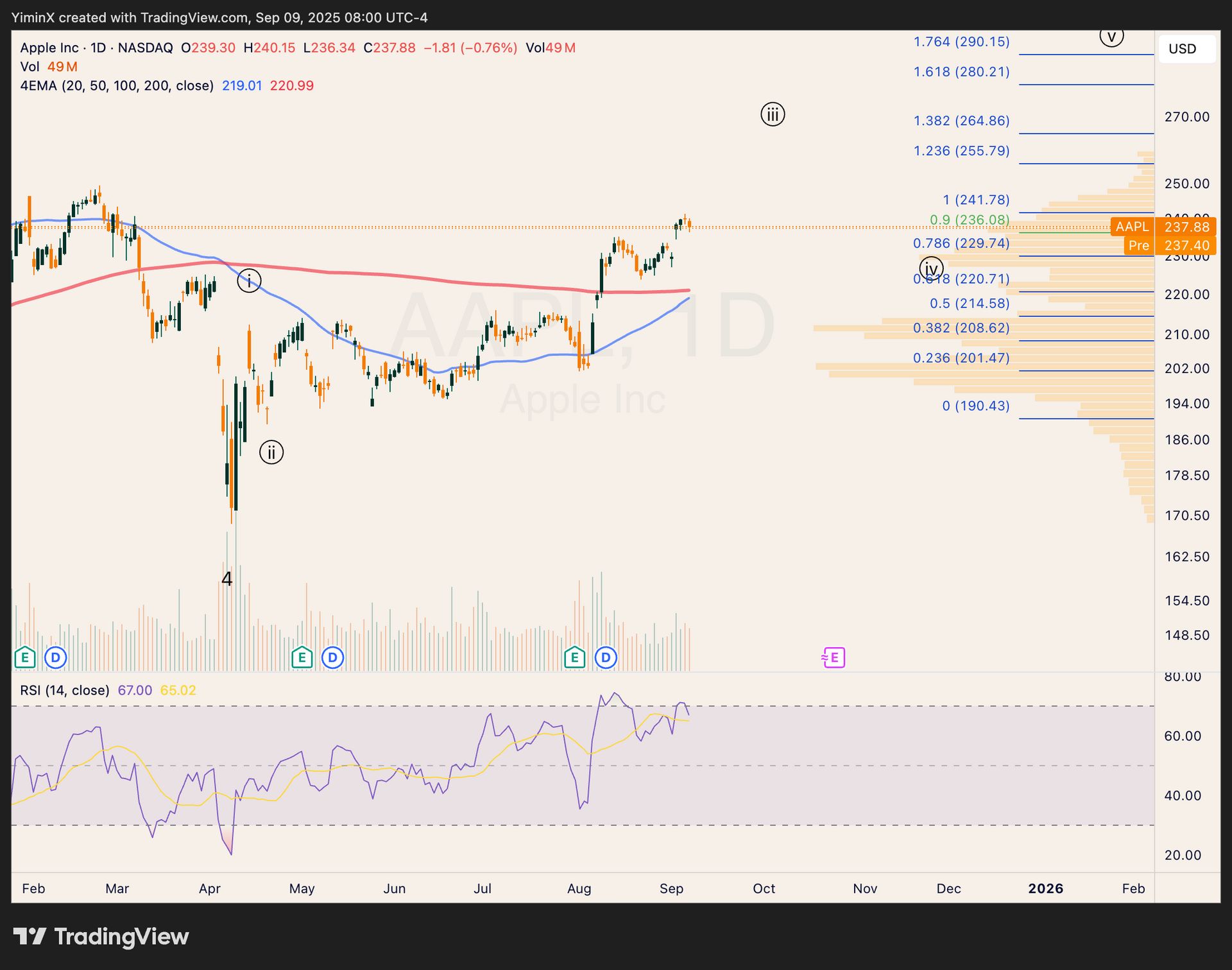 AAPL is continuing nicely towards our wave iii target of $264+.