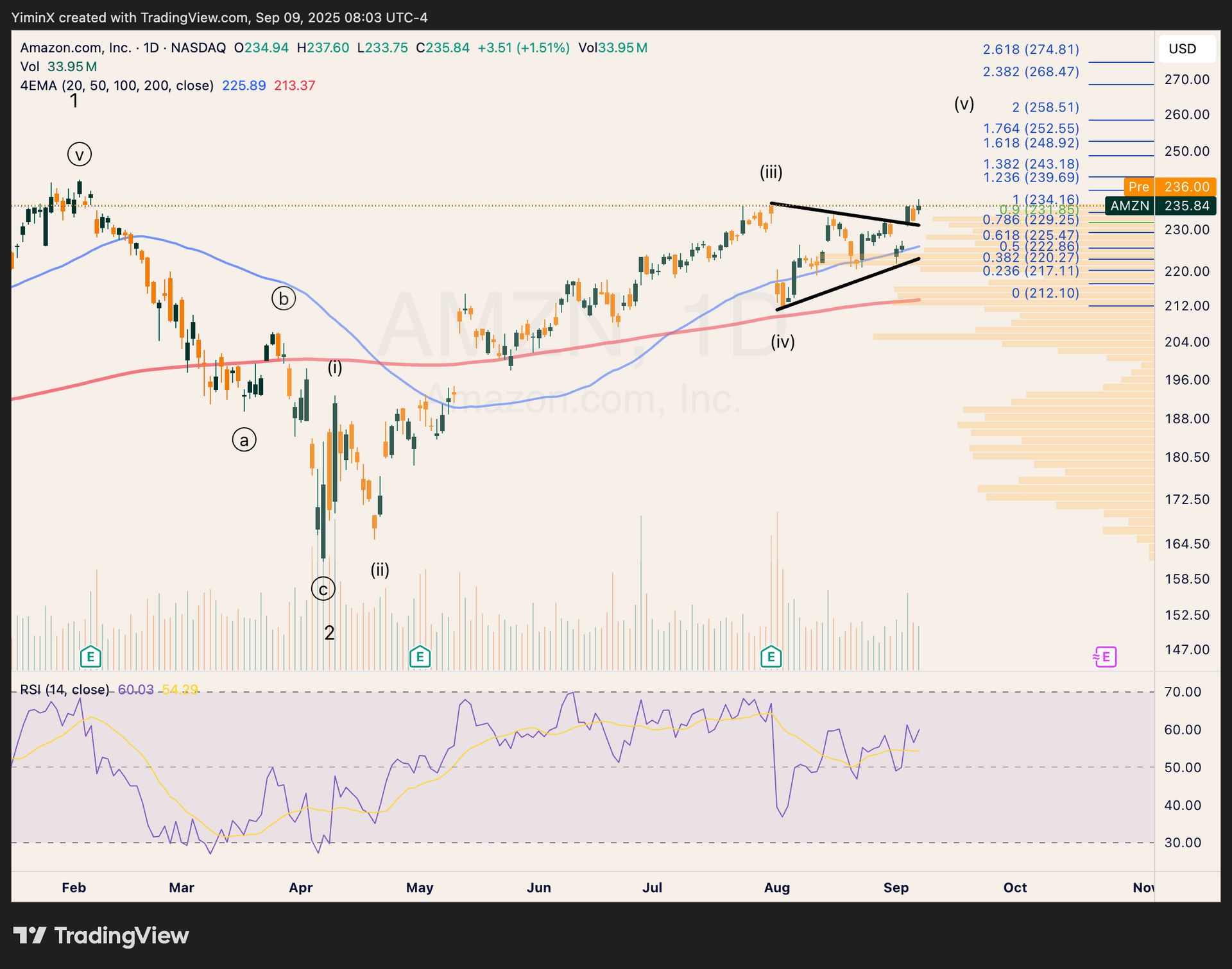 AMZN is about to surpass the July 31st high, likely moving towards our wave (v) target of $243+ next.