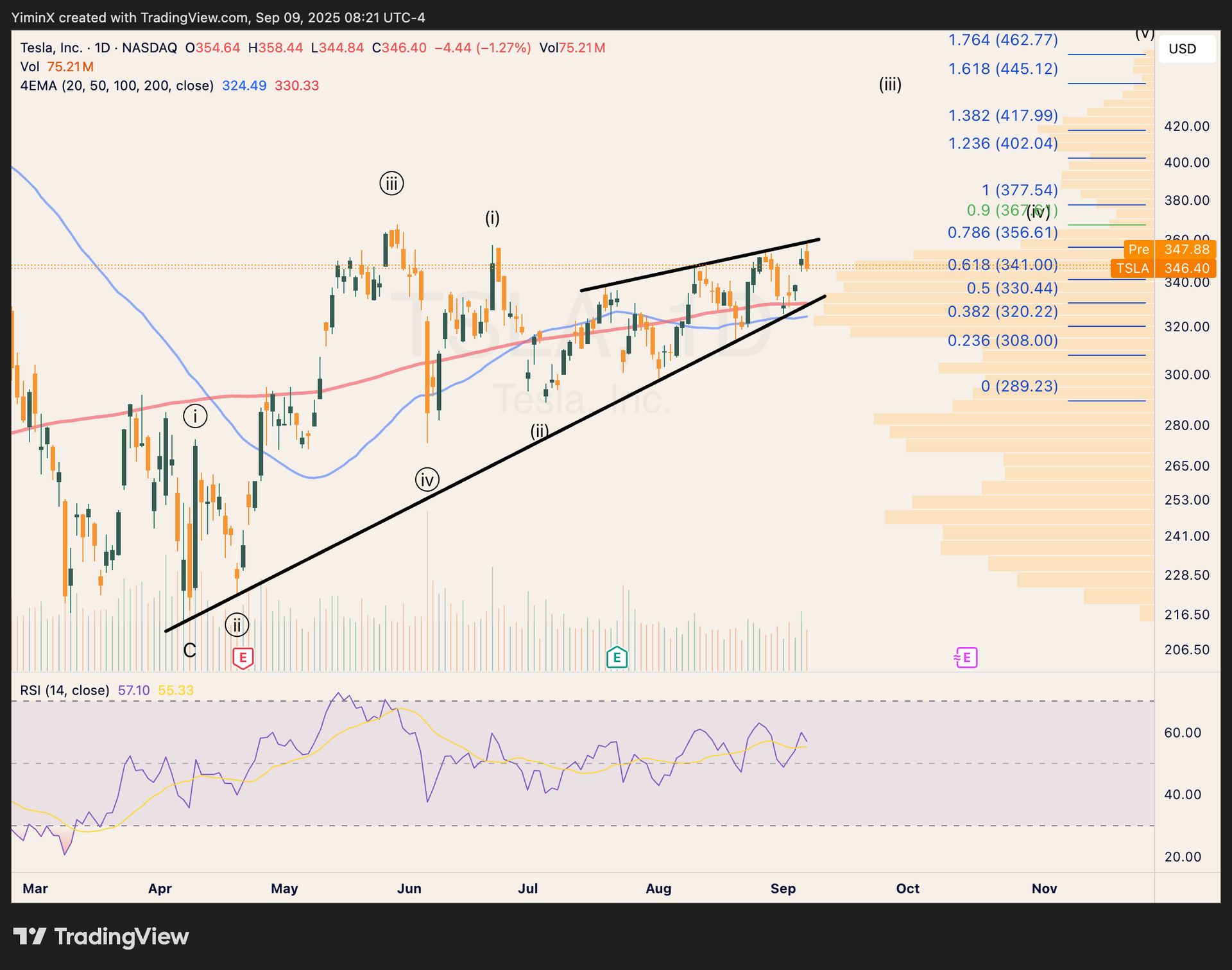 TSLA is in a bullish short-term uptrend, as long as it holds $335. TSLA’s call wall at $370 will be a significant resistance level to clear.