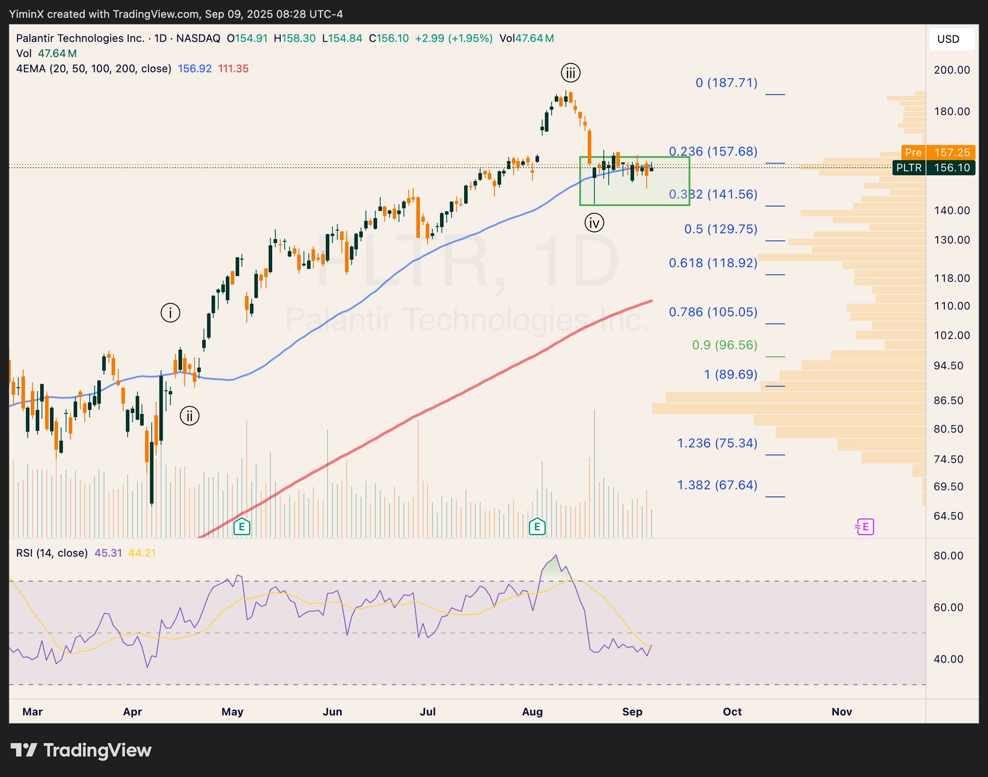 PLTR is more or less pinned at $150-160, around the 50-day MA.