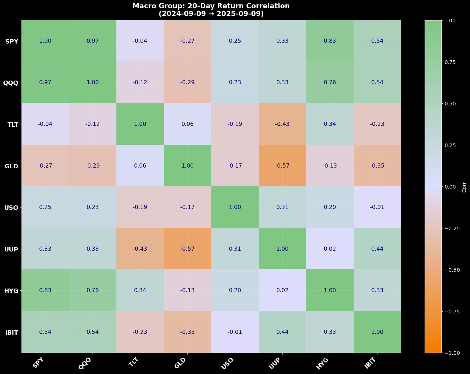 In the past 20 days, Gold traded with a modestly negative correlation with stocks, Bitcoin, and the US Dollar (UUP).