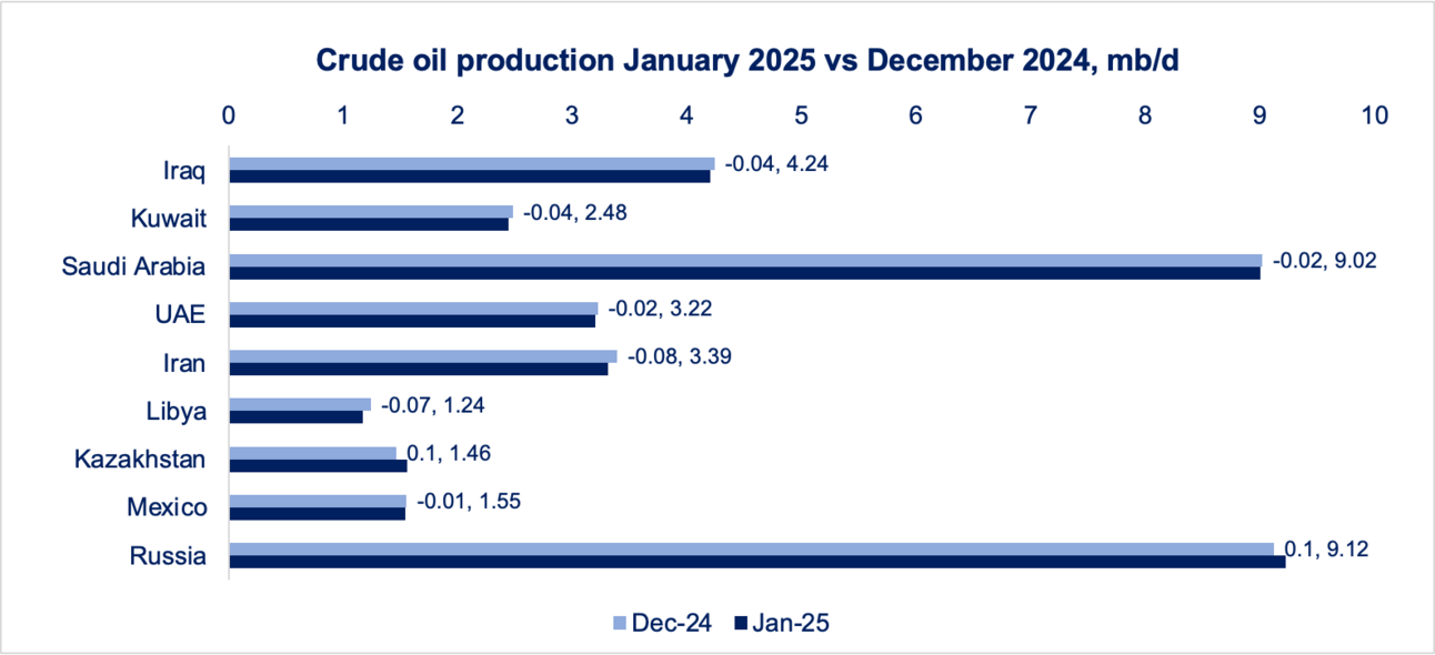 Overall, the total OPEC+ countries saw a supply decrease in January of 280 kb/d.