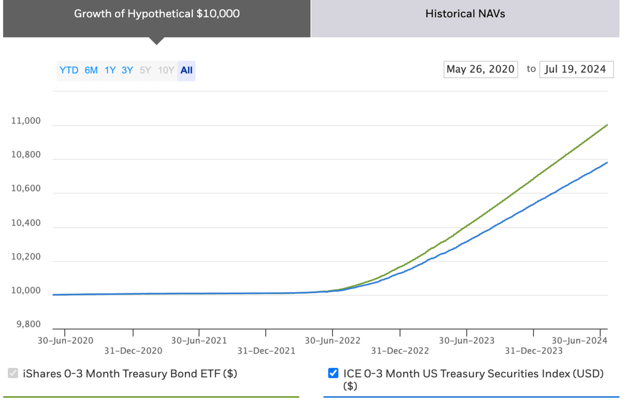 You can see that historically, SGOV has outperformed the index by 2% over the past 2 years.