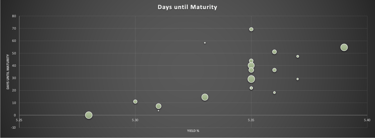Holdings: Days until Maturity vs Yield, size according to weighting