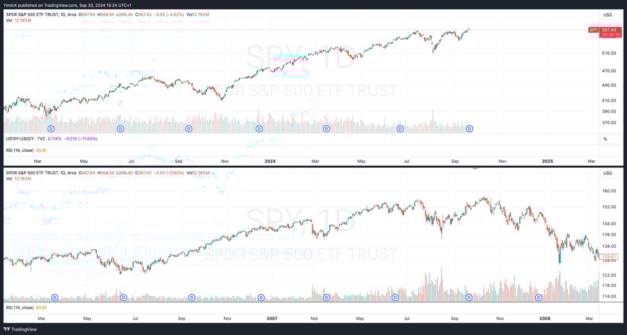 SPY 2024 (top) vs 2007 (bottom) (https://www.tradingview.com/x/biJk0qRB/)