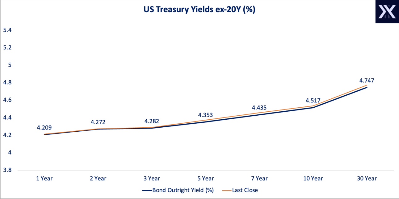 The 10-year yield is now 4.52% and the 30-year yield 4.75% They reflect not just the expected interest rate levels in the future, but also the compensation investors require for holding long duration bonds (aka. “term premium”).