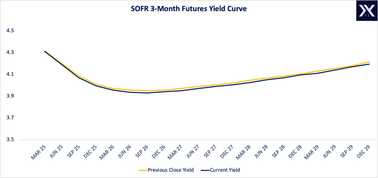 We start our interest rate update with the Fed Funds yields in the short end. Using the Fed Funds futures market, we have a good idea of what the market thinks the Fed will do in each meeting.
