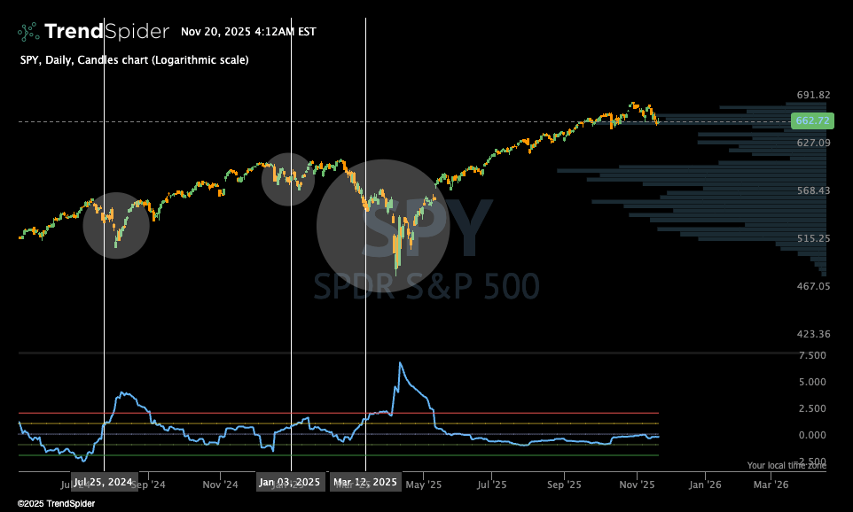 In past crashes, volatility had always spiked during the selloff, crossing 1.5 or 2 standard deviations above its average.