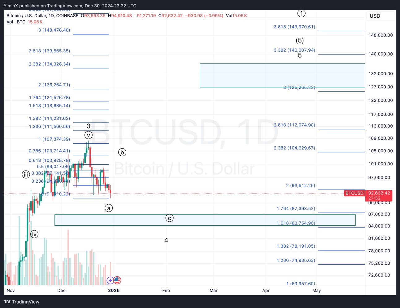 If wave circle-b does make past $101k, the final wave circle-c could end around $86k.